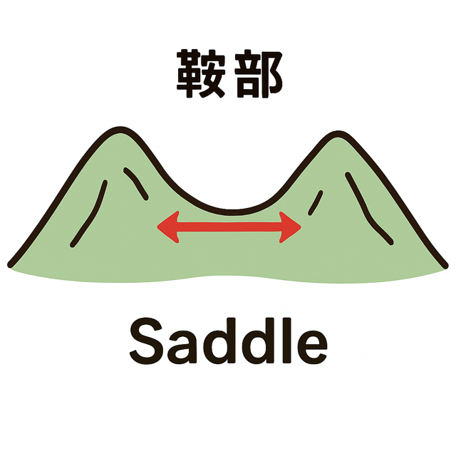 山と山の間にある、ちょうど鞍のようにくぼんだ地形のことを指します